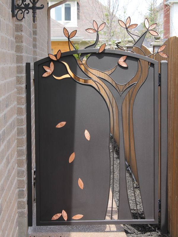 PRIVACY GATE, TREE DESIGN WITH COPPER LEAVES